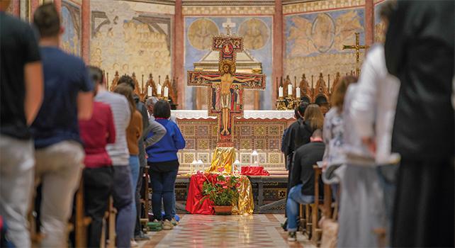 E mentre, con gli occhi pieni di lacrime, fissava lo sguardo nella croce del Signore, udì con le orecchie del corpo in modo mirabile una voce che proveniva dalla croce e che per tre volte gli disse: «Francesco, va, ripara la mia casa, che, come vedi, va tutta in rovina». Alla stupefacente esortazione di quella voce mirabile, l'uomo di Dio dapprima rimase atterrito; poi, colmo di gioia e di ammirazione, prontamente si alzò, e si impegnò totalmente a compiere l'incarico di riparare l'edificio esterno della chiesa: ma l'intenzione principale della Voce era diretta alla Chiesa, che Cristo acquistò con lo scambio prezioso del suo sangue, come lo Spirito Santo gli avrebbe insegnato ed egli stesso in seguito avrebbe rivelato ai suoi intimi (FF 1334).